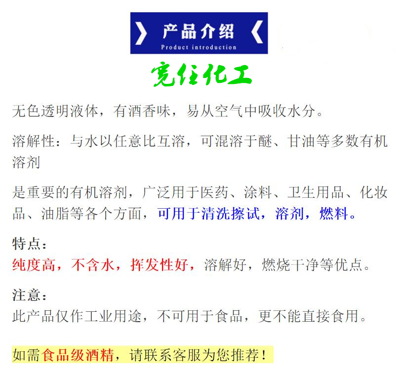 乙醇液体密度是0.789g/cm3(20C°) ,乙醇气体密度为1.59kg/m3,沸点是78.4℃,熔点是-114.3℃,易燃,其蒸气能与空气形成爆炸性混合物,能与水以任意比互溶。能与氯仿、乙醚、甲醇、丙酮和其他多数有机溶剂混溶,相对密度(d15.56)0.816,pKa=15.9。